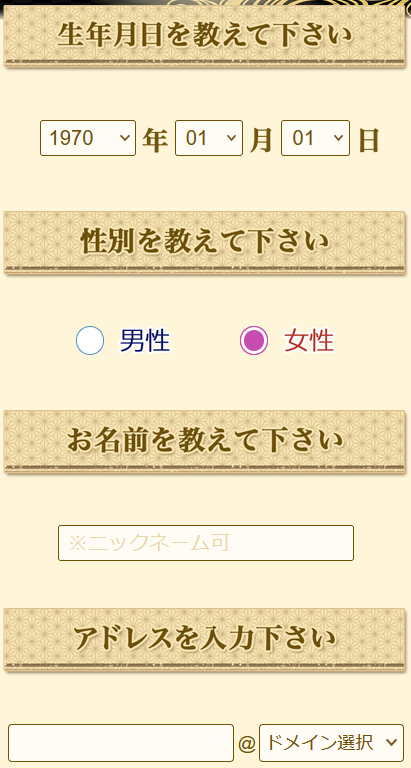 性別や誕生日、名前などを入れて、メールを送信するだけです!
